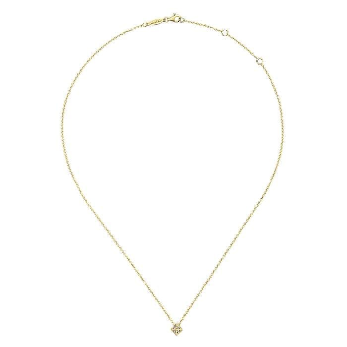 Diamond Encrusted Pyramid Stud Hanging Delicately on 14k Yellow Gold Cable Chain Necklace