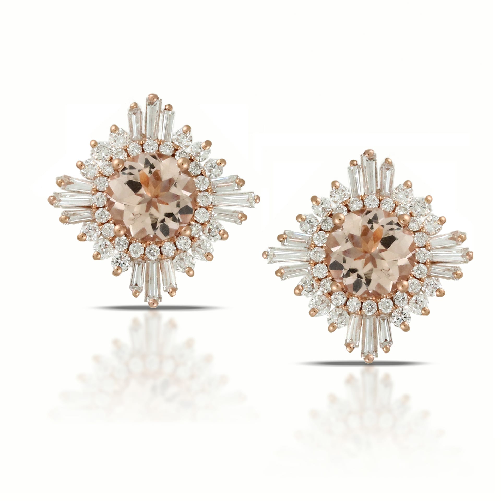 Diamond Halo And Sharps Surround Morganite Center Stud Earrings