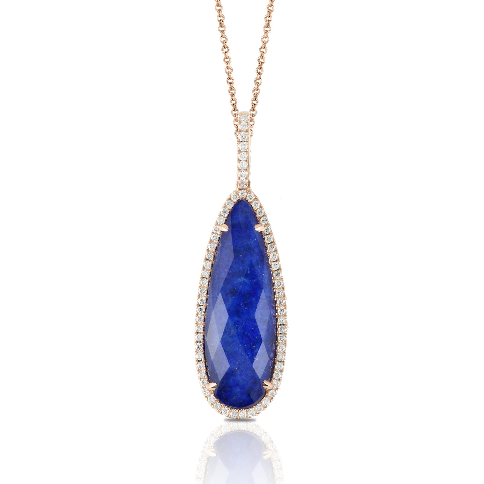 Diamond Pendant With Clear Quartz Over Lapis Set in 18k Rose Gold