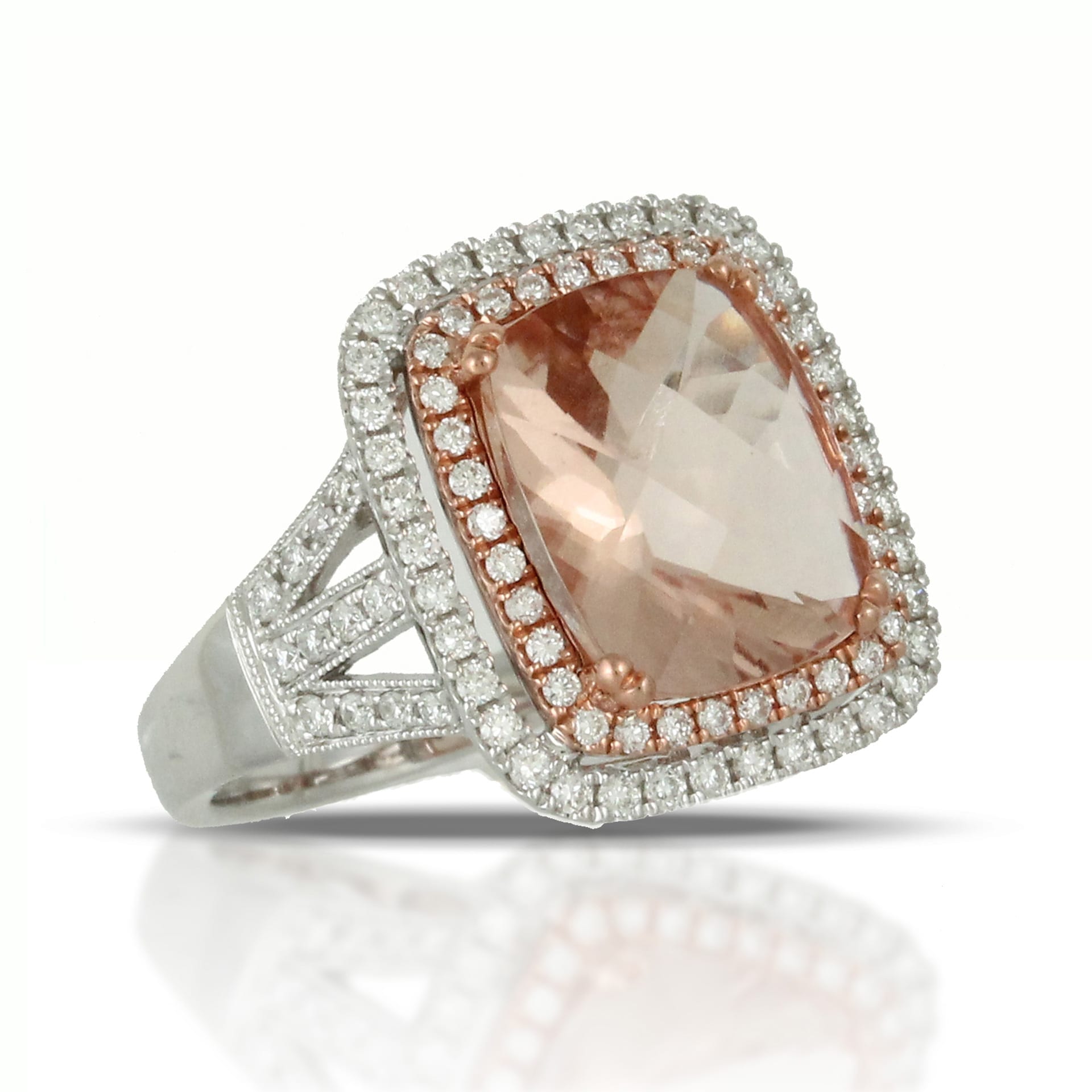 Double Halo Statement Ring 18k Rose And White Gold Diamond Ring With Morganite