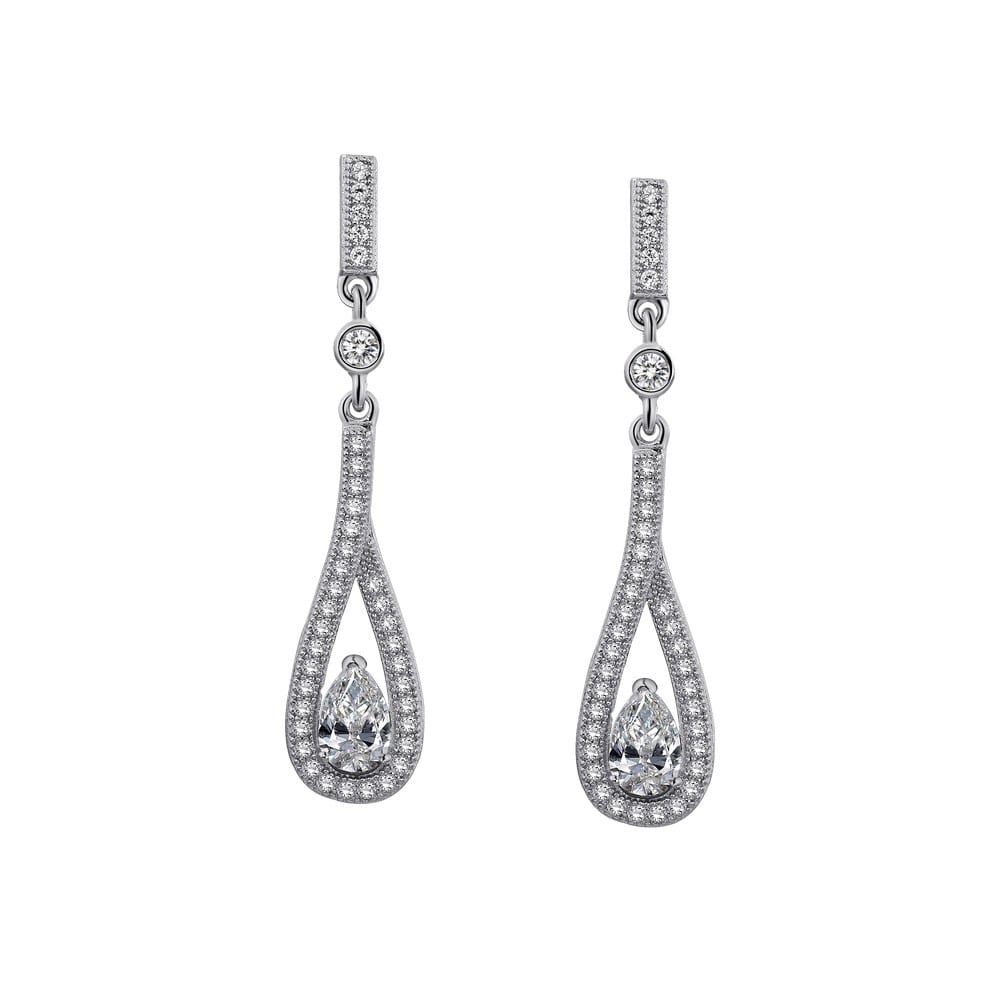 drop earrings are set with simulated diamonds in sterling silver bonded with platinum