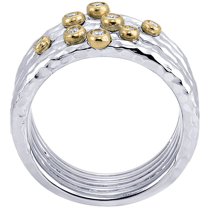 Eight Sparkling Diamonds Enveloped in 18k Yellow Gold Set on a Wide Band of 925 Sterling Silver Ring
