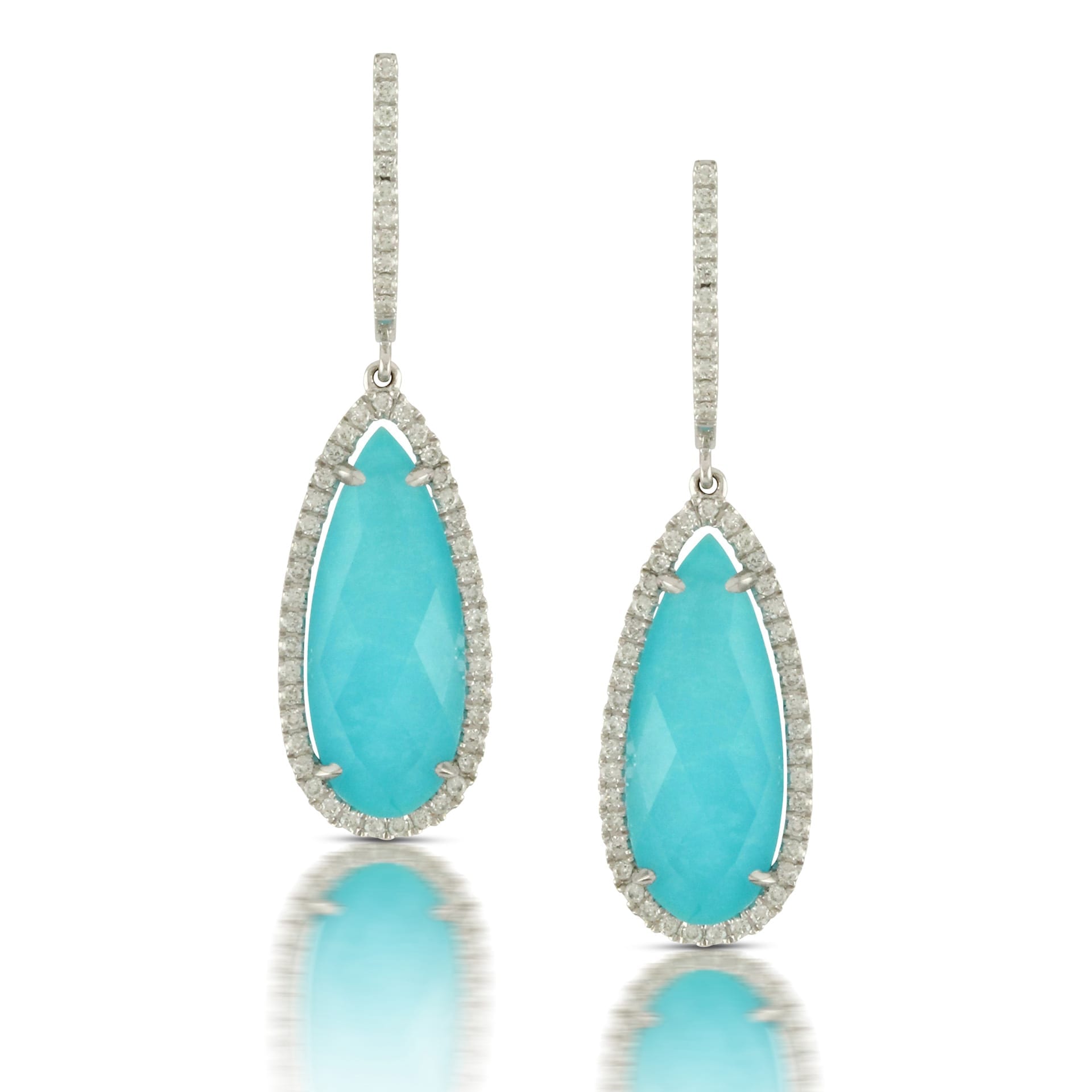 Elegant 18k White Gold Diamond Earring With Clear Quartz Over Turqouise