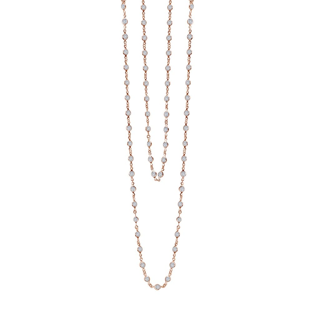 Elegant and charming necklace is set with simulated diamonds in rose gold plated sterling silver