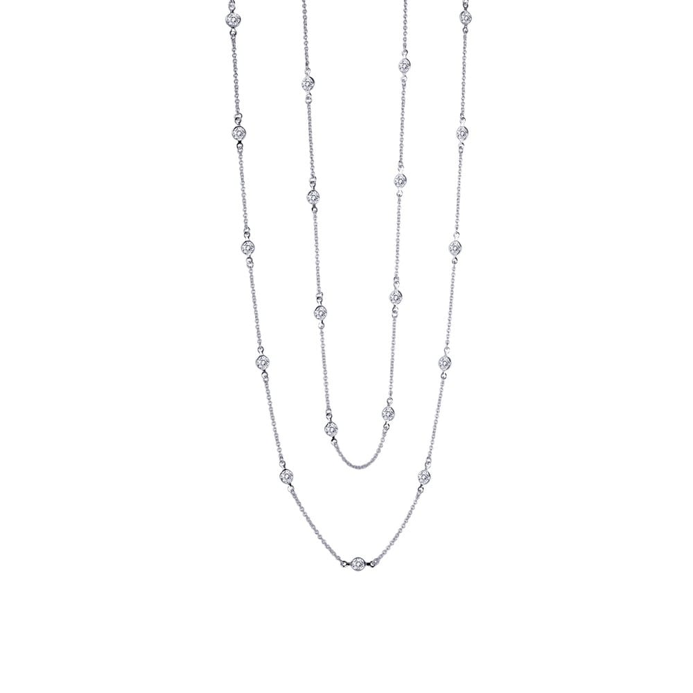 Elegant and charming necklace is set with simulated diamonds in sterling silver bonded with platinum