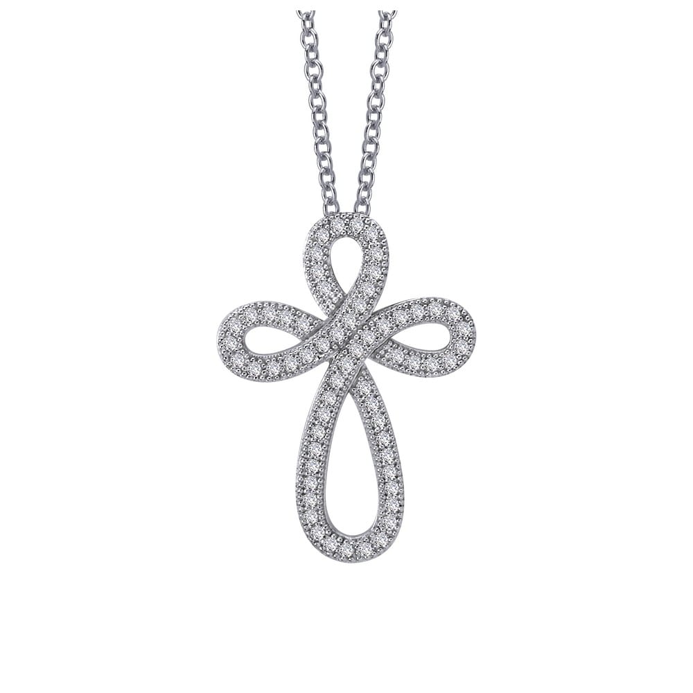 Elegant and stylish pendant is set with simulated diamonds in sterling silver bonded with platinum The pendant comes on an adjustable 18 inch chain