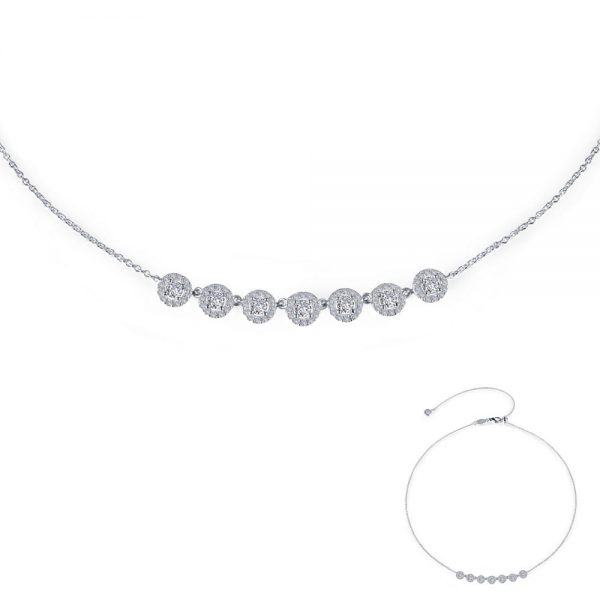 Elegant and timeless adjustable 7 Symbols of Joy halo choker necklace festures simulated diamonds set in sterling silver bonded with platinum quantity