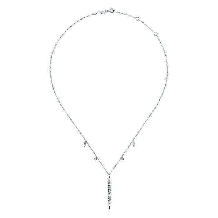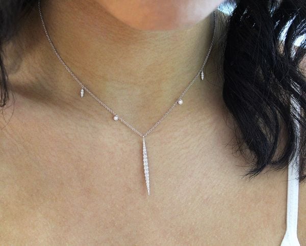 Elegant Column Of Tapered Diamonds Accented With Smaller Diamond Charms on 14k White Gold Necklace Chain