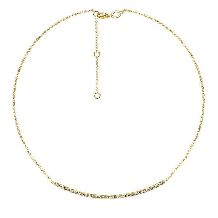 Elongated Curved Bar Fashion Necklace Crafted From 14k Yellow Gold Set With Diamonds