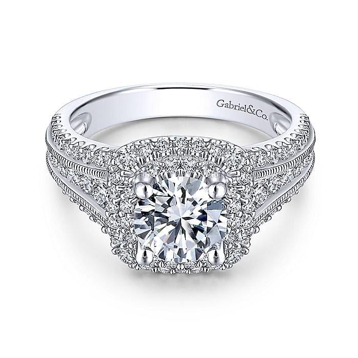 Exceptional Detailing Diamond Channel Band With Double Halo in 14k White Gold Engagement Ring Setting