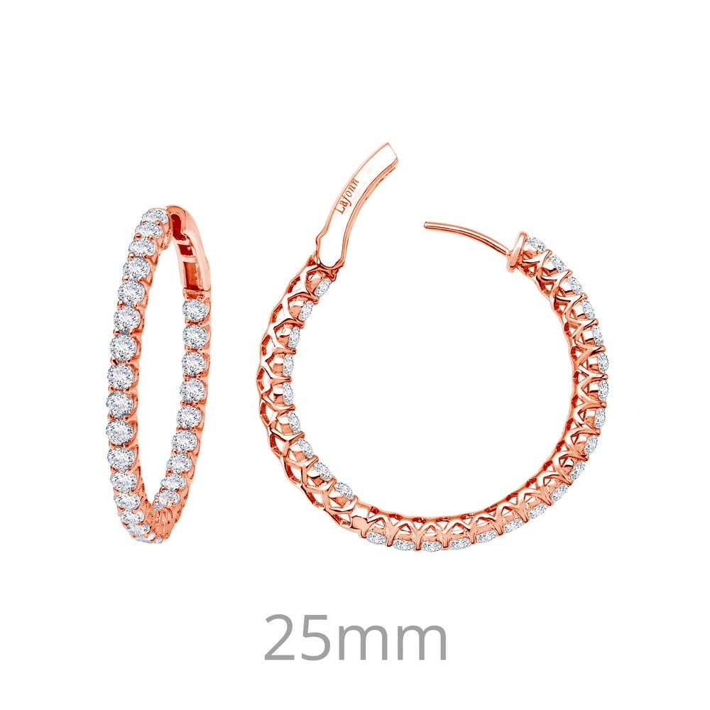 Fun and elegant inside out hoop earrings are set with simulated diamonds in rose gold plated sterling silver 25mm diameter