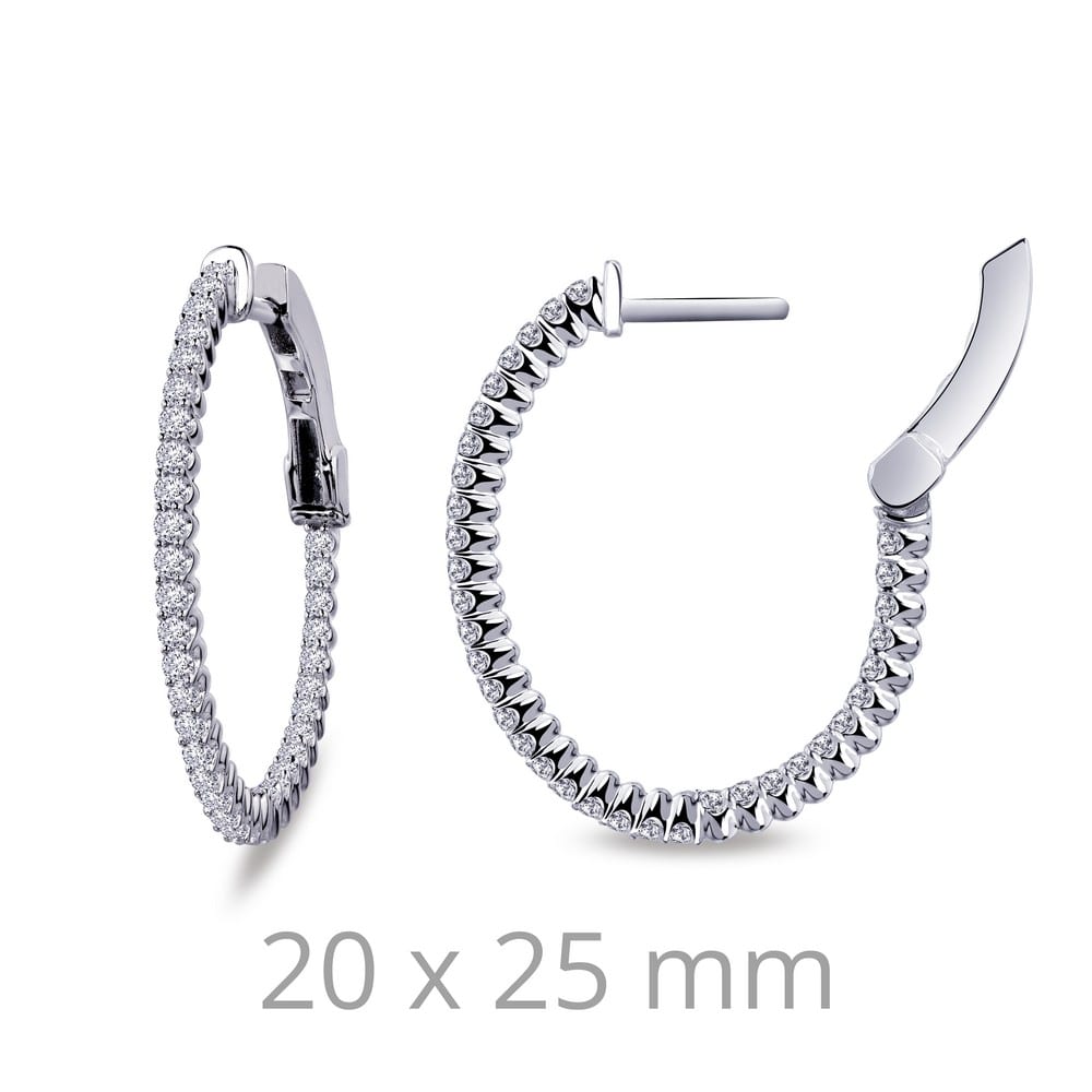 Fun and elegant inside out hoop earrings are set with simulated diamonds in sterling silver bonded with platinum 25*20mm Oval