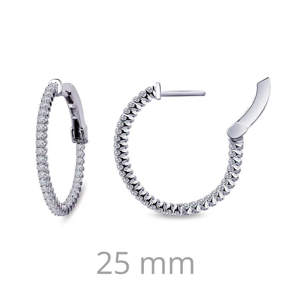 Fun and elegant inside out hoop earrings are set with simulated diamonds in sterling silver bonded with platinum 25mm diameter
