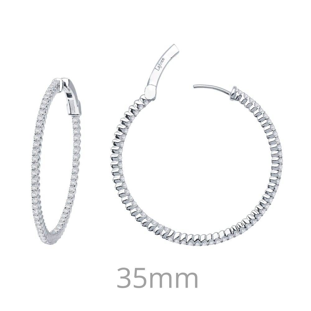 Fun and elegant inside out hoop earrings are set with simulated diamonds in sterling silver bonded with platinum 35mm diameter