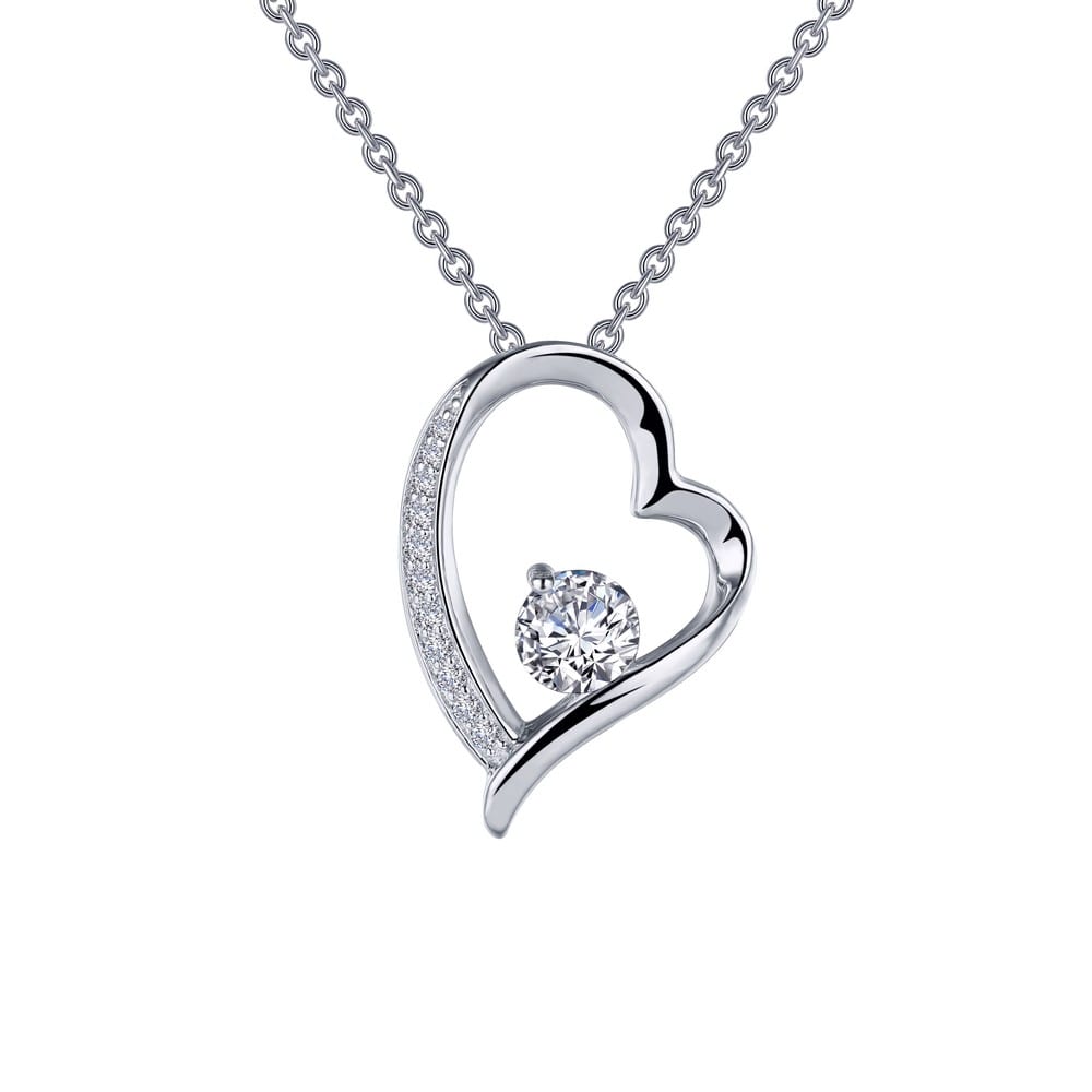 Fun and playful adorable open heart pendant is set with simulated diamonds in sterling silver bonded with platinum The pendant comes on an adjustable 20 inch chain