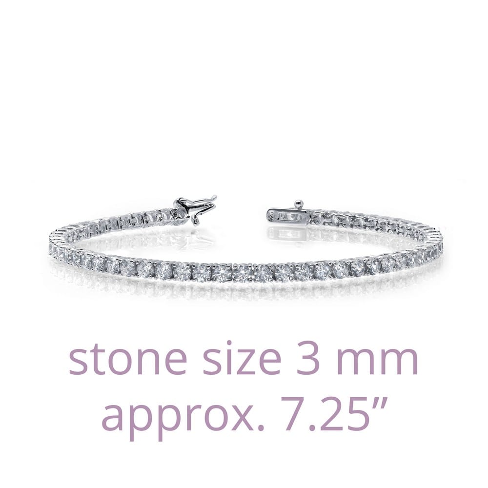 Glamorous tennis bracelet is set with simulated diamonds in sterling silver bonded with platinum