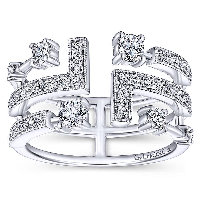Labyrinth Maze Wide Band Women's Ring With Pave Diamonds And Prong-Set Stones in 14k White Gold