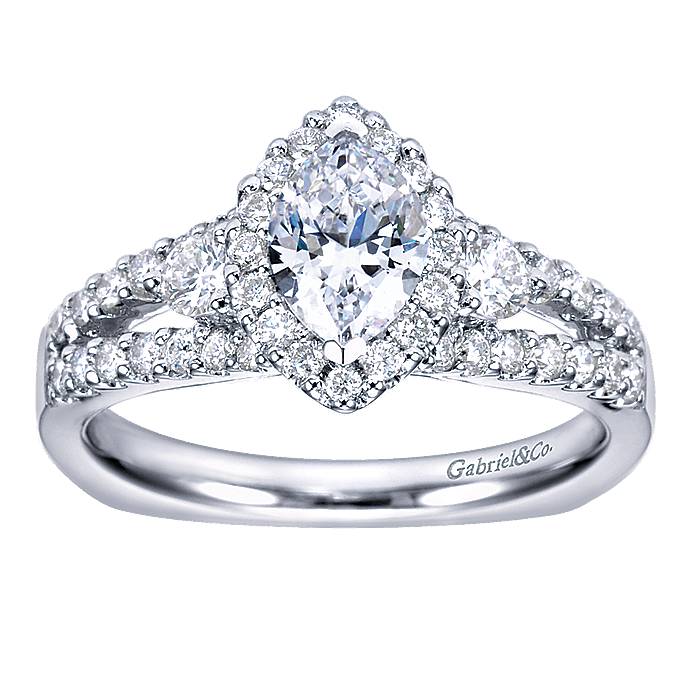 Marquise Halo Center Paired Side Diamonds Split Shank Diamond Band in 14k White Gold Engagement Ring Setting