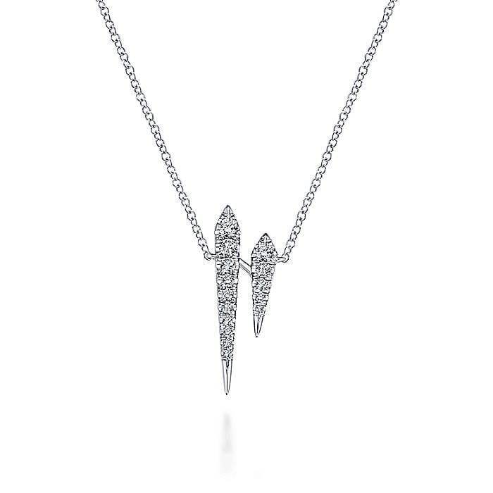 Mismatched Pair of Pave Diamond Spikes Adorn This Playful 14K White Gold Cable Fashion Necklace