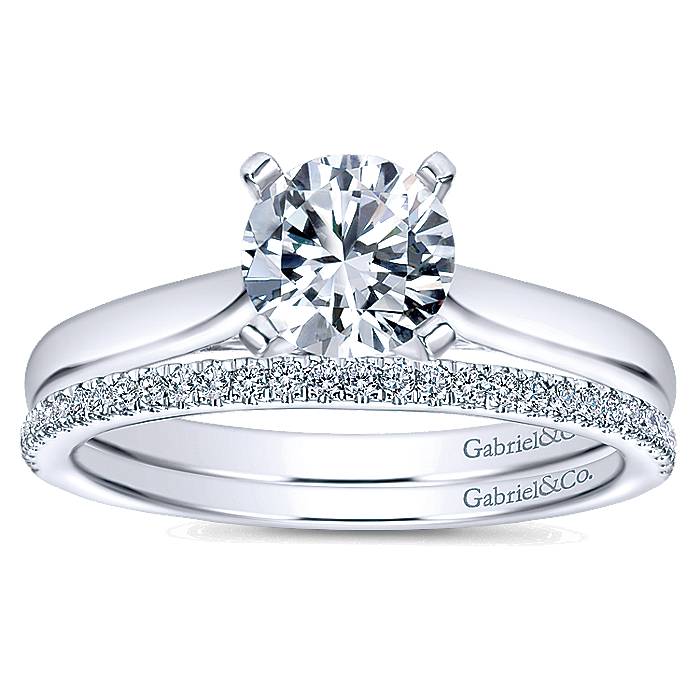 Modern Design With Diamond Encrusted Inner Connection in 14k White Gold Bridal Engagement Ring Setting