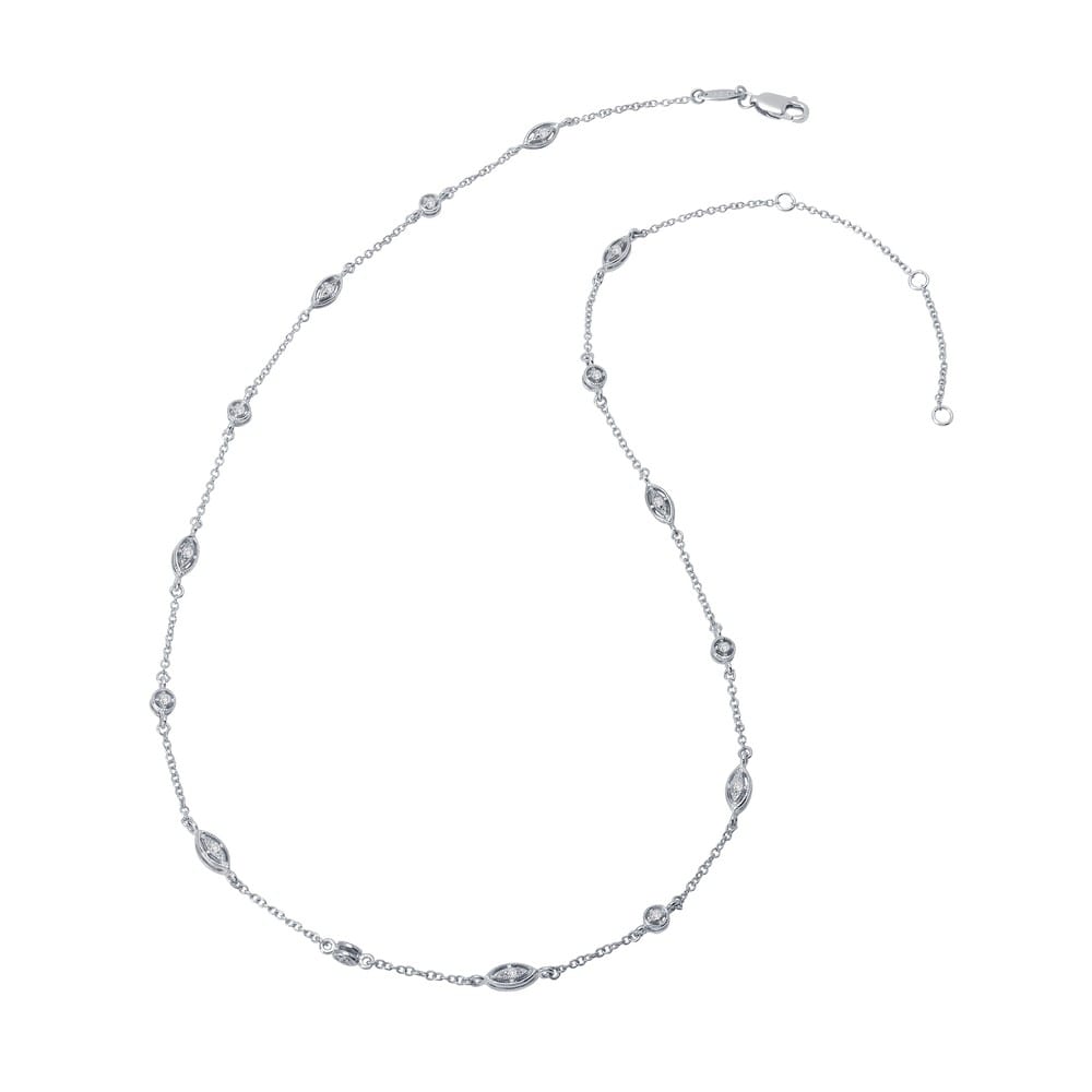 necklace is set with simulated diamonds in sterling silver bonded with platinum