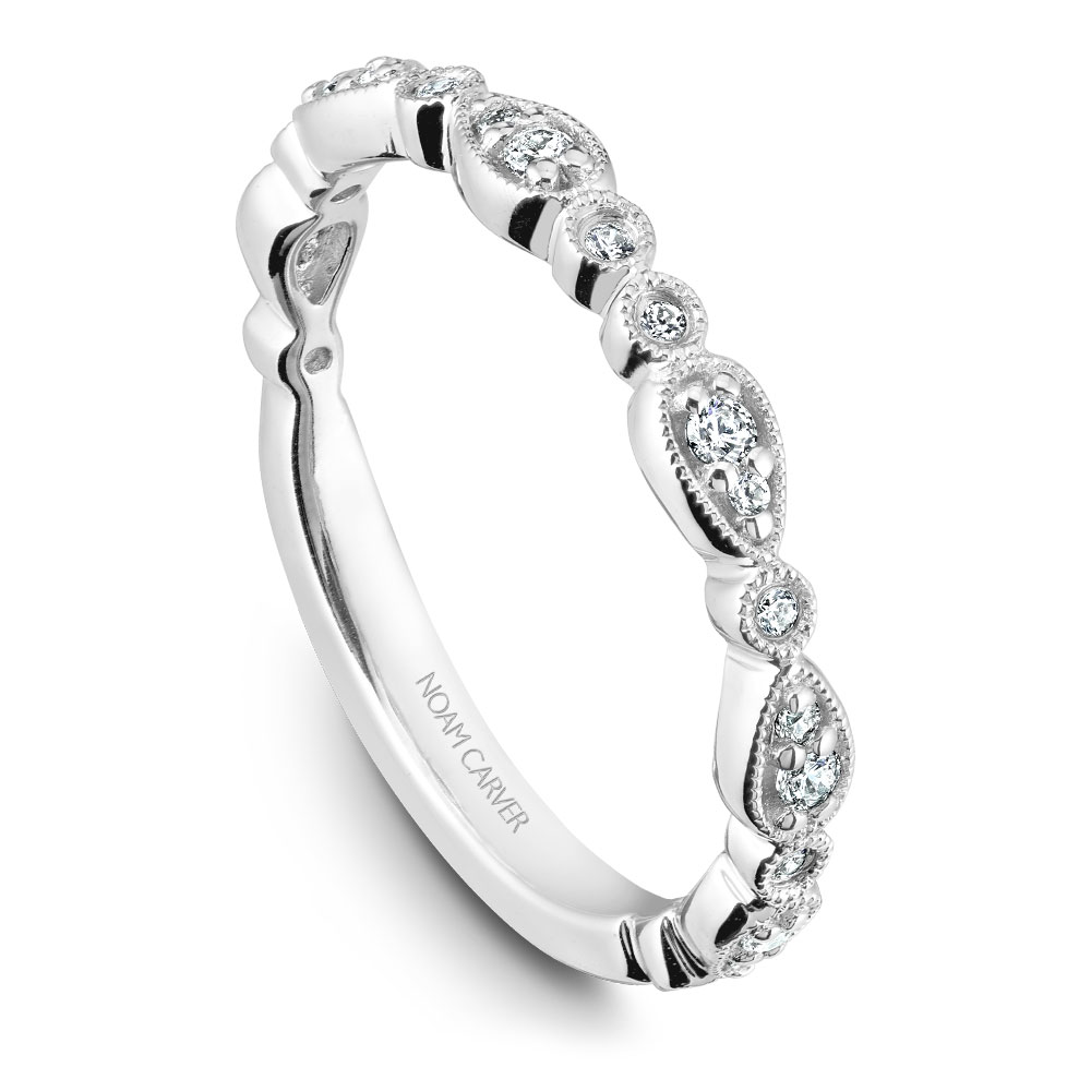 Noam Carver Matching Band in White Gold with 20 Round Diamonds, TCW 0.13 ct