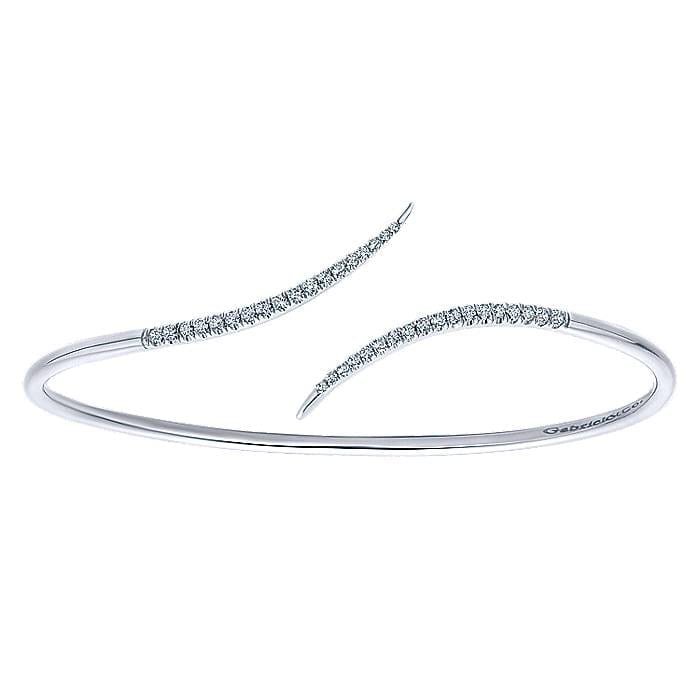 Open Design Swings Strands of Pave Diamonds Set in 14k White Gold and Sterling Silver Bangle