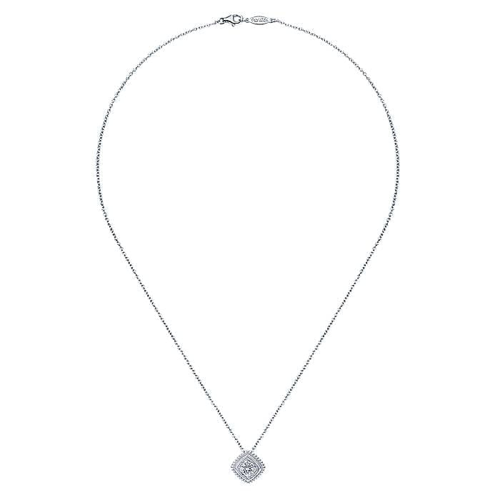 Ornate Pendant 925 Sterling Silver Cushion Diamond Cluster Necklace