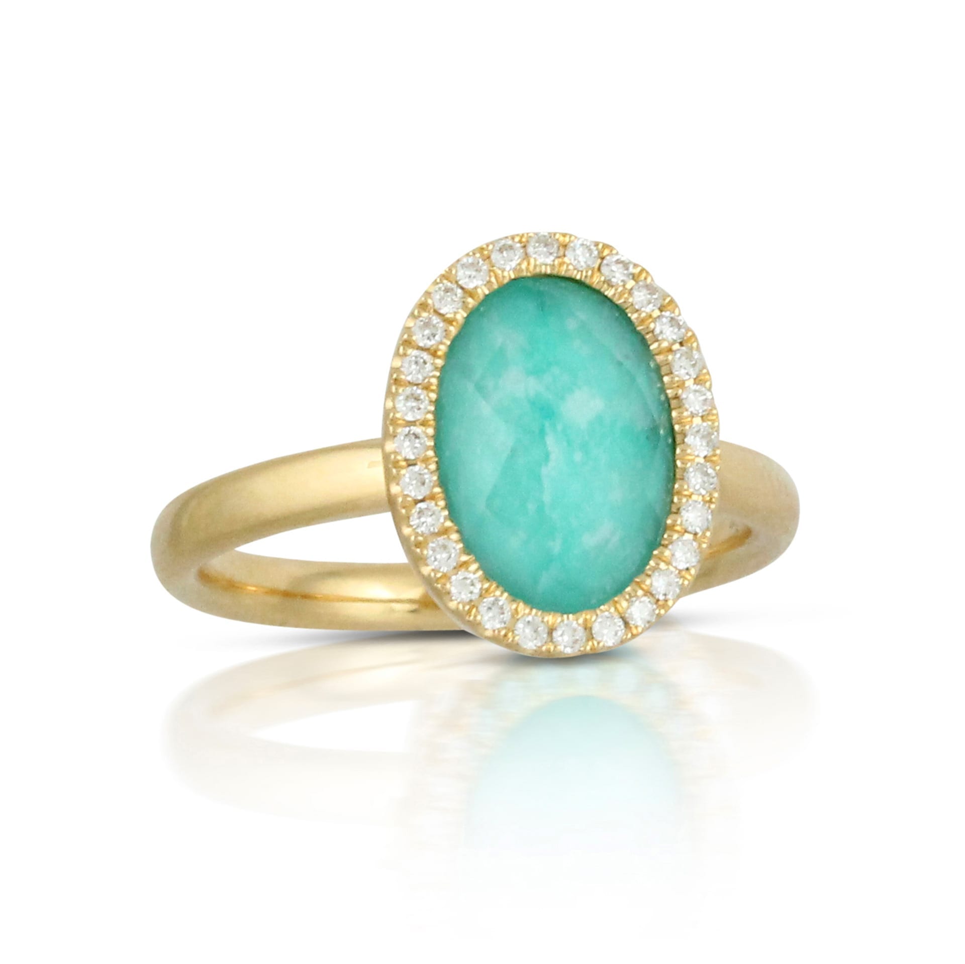 Oval Focus Ring 18k Yellow Gold And Diamonds With Clear Quartz Over Amazonite