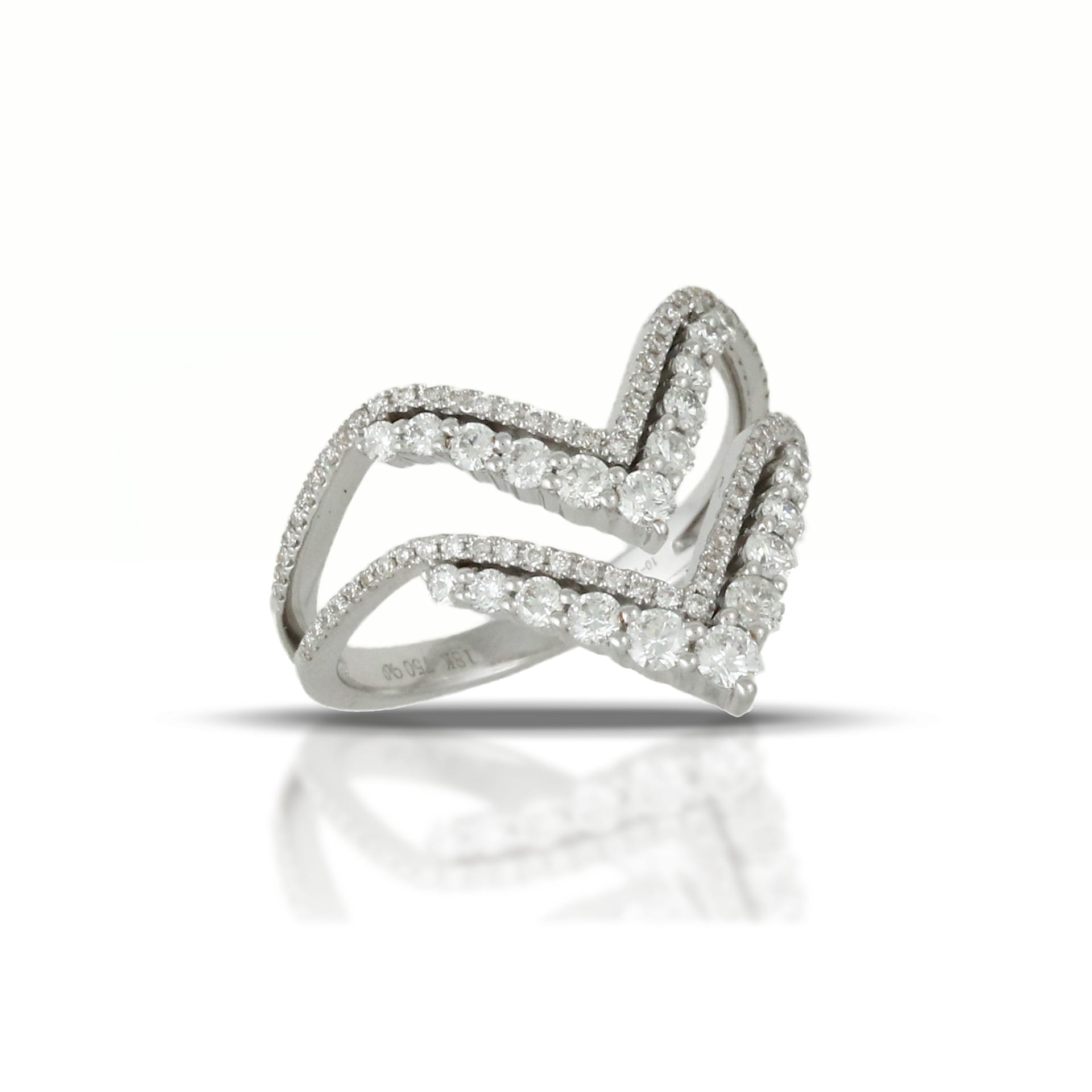 Parallel Curved 18k White Gold Diamond Ring