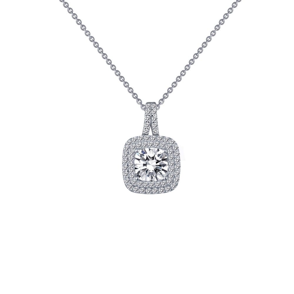 pendant is set with simulated diamonds in sterling silver bonded with platinum The pendant comes on an adjustable 18 inch chain