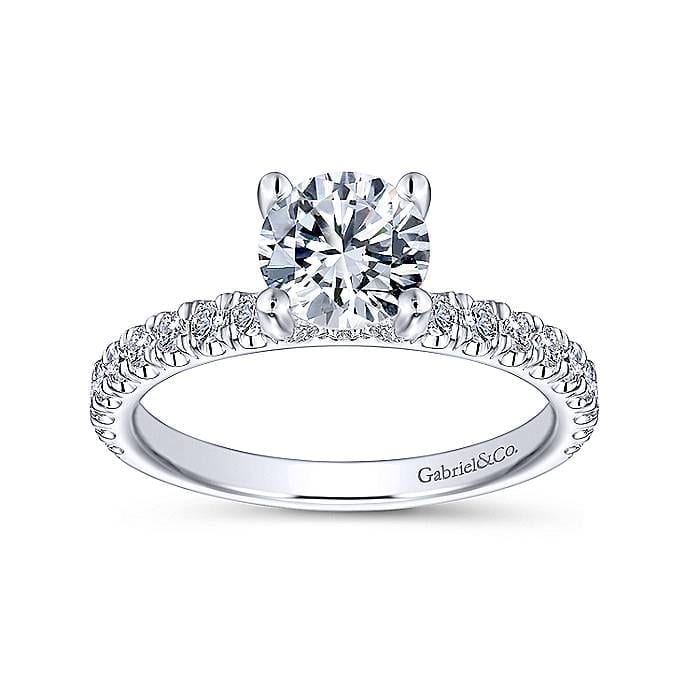 Perfect Sparkling Round Cut With Scalloped Pave Diamonds Band in 14k White Gold Engagement Ring Setting