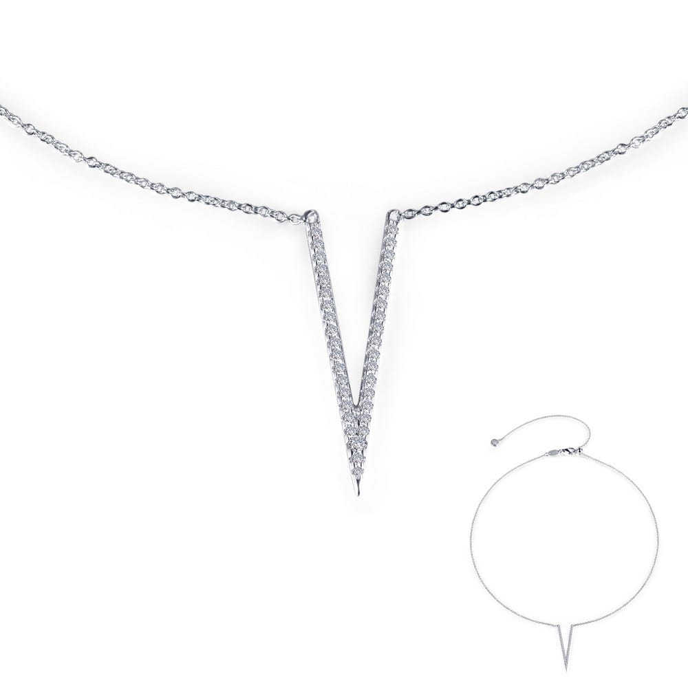 Playful and trendy adjustable pave V choker necklace is set with simulated diamonds in sterling silver bonded with platinum
