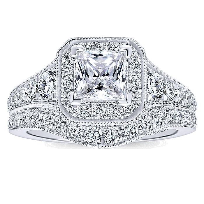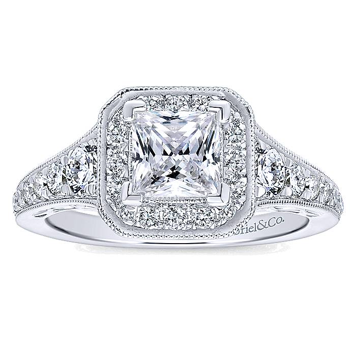 Princess Cut Diamond Center Halo With Crafted Channel Setting in 14K White Gold Bridal Engagement Ring Setting