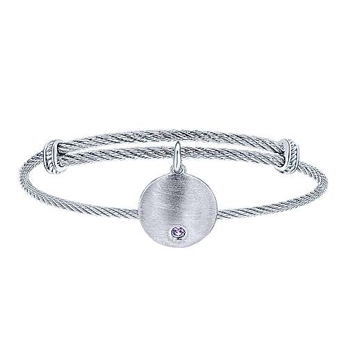Adjustable Stainless Steel Bangle with Round Sterling Silver Alexandrite Stone Disc Charm