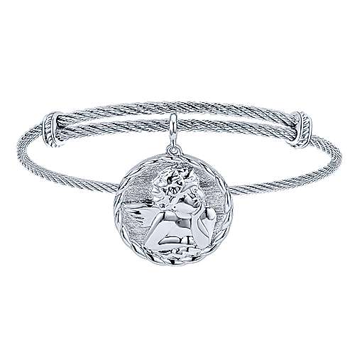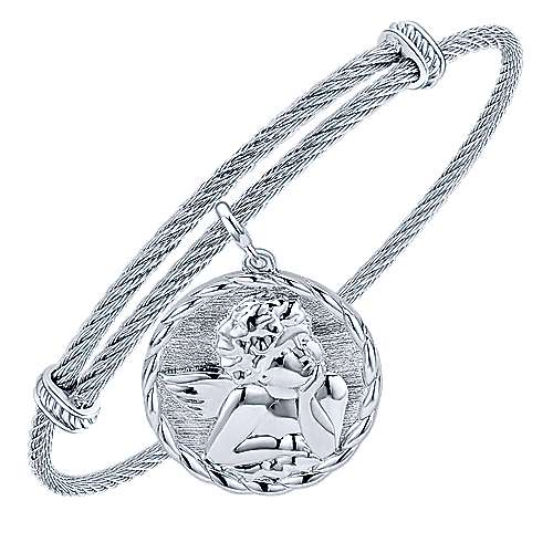 Adjustable Twisted Cable Stainless Steel Bangle with Sterling Silver Angel Charm