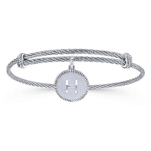Adjustable Twisted Cable Stainless Steel Bangle with Sterling Silver H Initial Charm