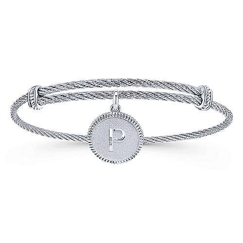 Adjustable Twisted Cable Stainless Steel Bangle with Sterling Silver P Initial Charm