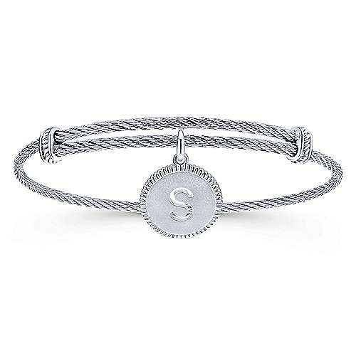 Adjustable Twisted Cable Stainless Steel Bangle with Sterling Silver S Initial Charm