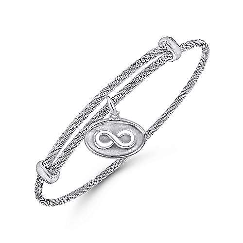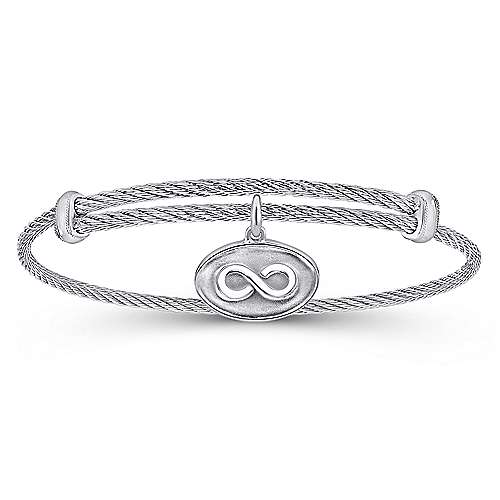 Adjustable Twisted Cable Stainless Steel Bangle with Sterling Silver Infinity Charm