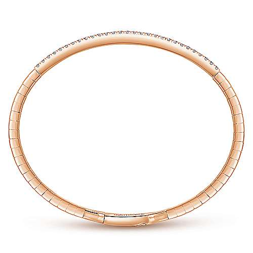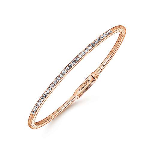 14K Rose Gold Bangle with Single Diamond Row