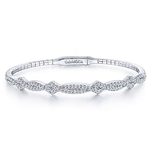 14K White Gold Twisted Diamond Bangle