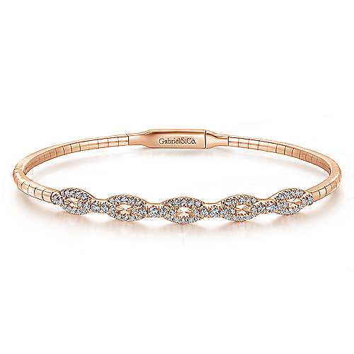 14K Rose Gold Bangle with Diamond Oval Links