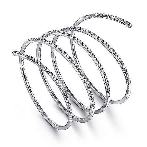 14K White Gold Wraparound Diamond Bangle