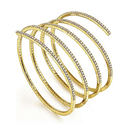 14K Yellow Gold/Diamond Wraparound Spiral Bangle