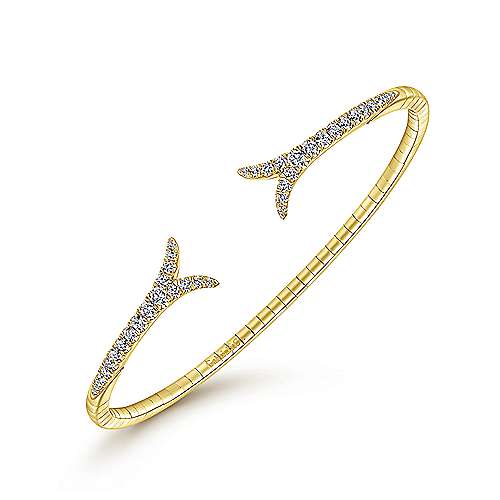 Split 14K Yellow Gold Bangle with Diamond Design Accents
