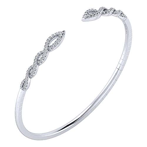Split 14K White Gold Twisted Diamond Bangle