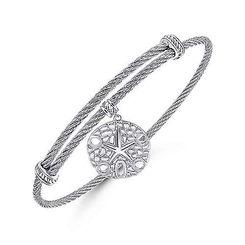 Adjustable Twisted Cable Stainless Steel Bangle with Sterling Silver Sand Dollar Charm