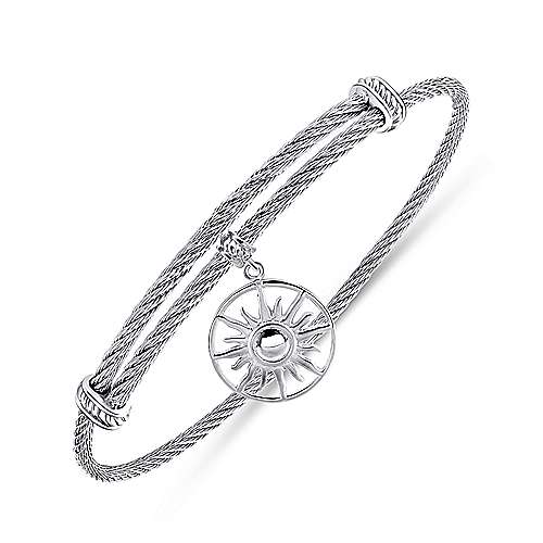 Adjustable Twisted Cable Stainless Steel Bangle with Sterling Silver Sun Charm