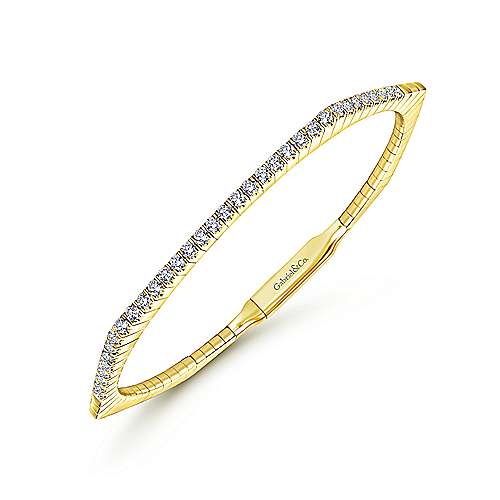 14K Yellow Gold Hexagonal Shape Diamond Bangle